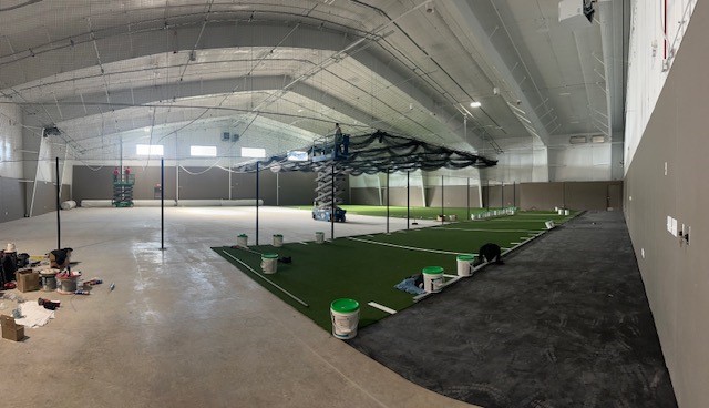 The Training Center is 85% complete, with the last 4 cages going in today and the remaining turf and flooring being installed over the next week. The Center is adjacent to our current Sports Center and home of the WAA Ducks Baseball and WAA Spikes Softball teams. The facility includes 8 baseball/softball cages and a dedicated workout area for WAA athletes.